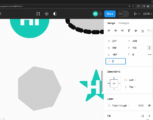 오른쪽 도구에서 조절해서 만들 수도 있다.많은 값을 셀프로도 설정할 수 있어서 피그마에서는 디자인 할 수 있는 모양이 한계없이무궁무진 해보인다.