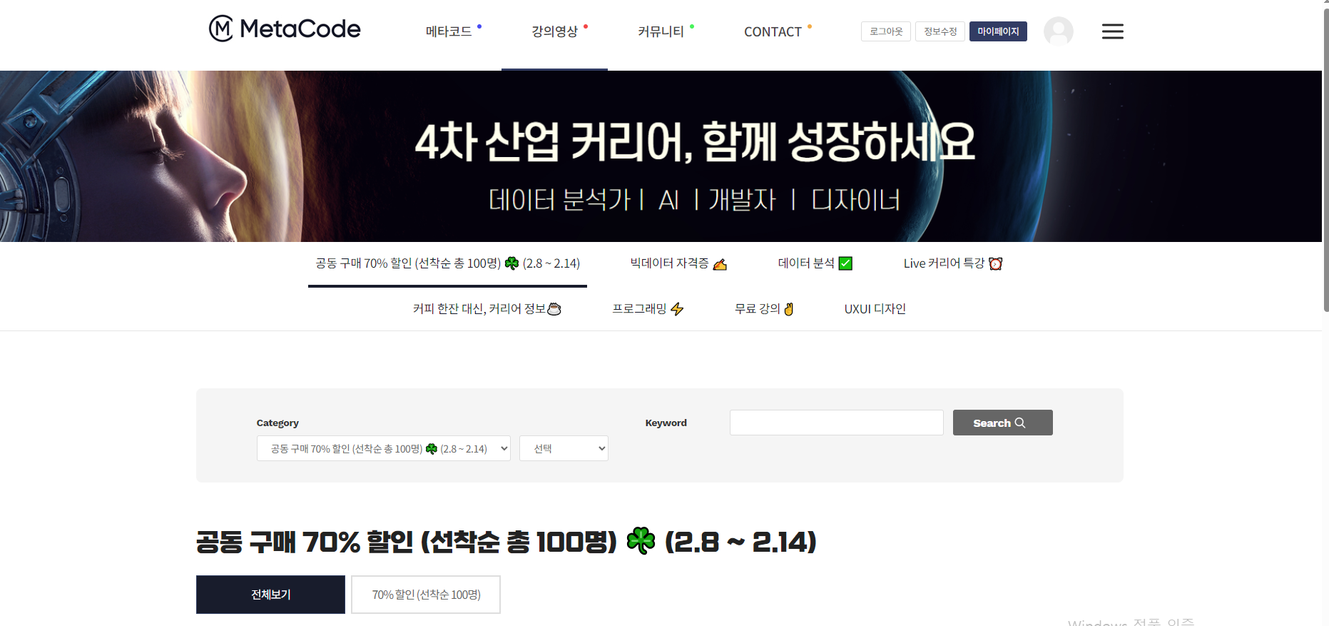 빅데이터 , AI 강의 플랫폼 & IT 현직자 모임 플랫폼ㅣ메타코드 커뮤니티 일원이 되시기 바랍니다.