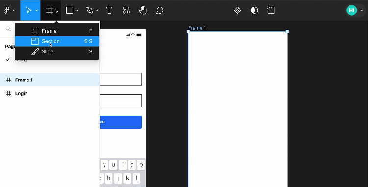 격자무늬 모양에서 Frame은 화면에 아트보드를 만들 때 사용한다.