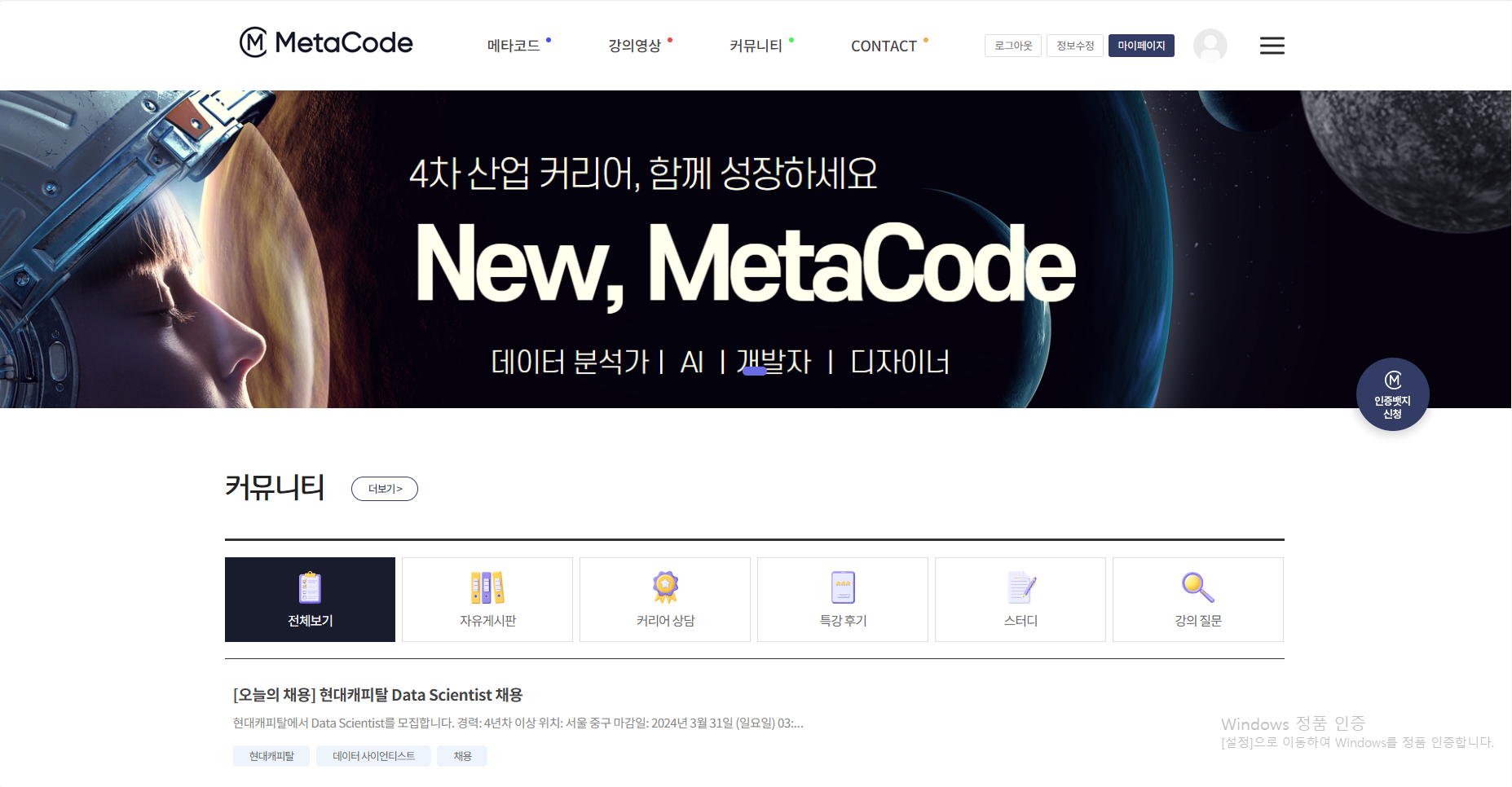 빅데이터 , AI 강의 플랫폼 & IT 현직자 모임 플랫폼ㅣ메타코드 커뮤니티 일원이 되시기 바랍니다.