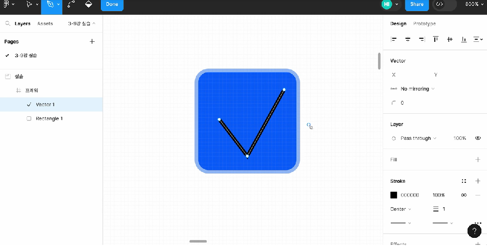 펜으로 선도 그려주어서 체크 디자인을 만들었다.이렇게 하나의 모양을 다 만들었으면왼쪽 상단의 done을 클릭해주거나 ESC버튼을 통해 완료해주면 된다고 한다.ESC버튼은 나가기 기능으로만 주로 썼는데 끝맺음으로도 쓸 수 있군.헷갈리지 말아야겠다.