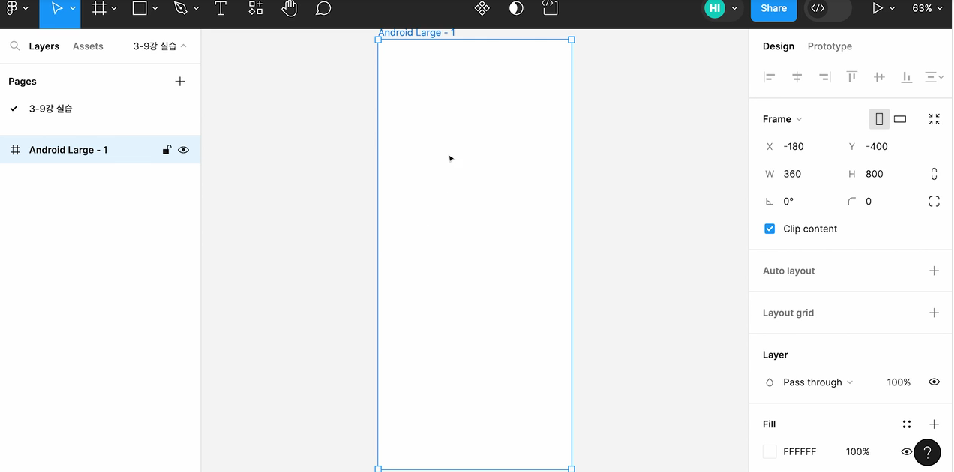 먼저 홈에서 디자인 파일을 생성해서 원하는 디바이스의 프레임을 만들어주었다.