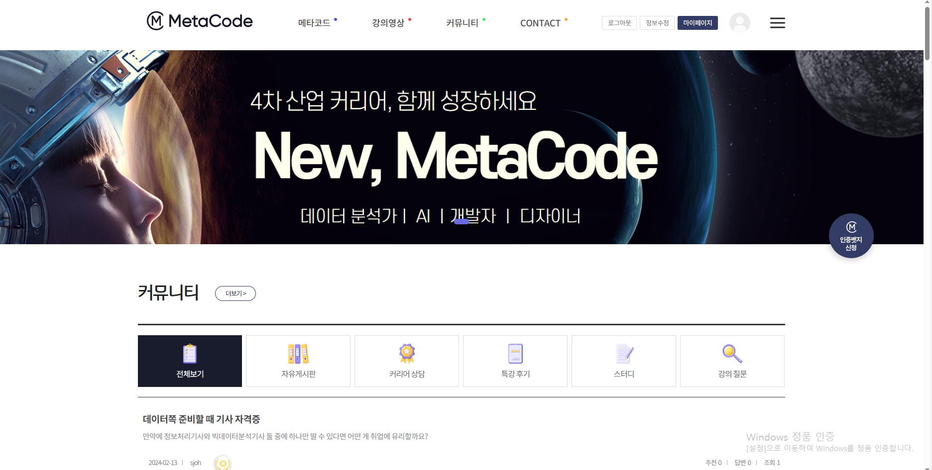 빅데이터 , AI 강의 플랫폼 & IT 현직자 모임 플랫폼ㅣ메타코드 커뮤니티 일원이 되시기 바랍니다.