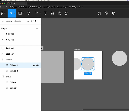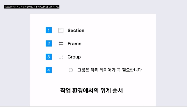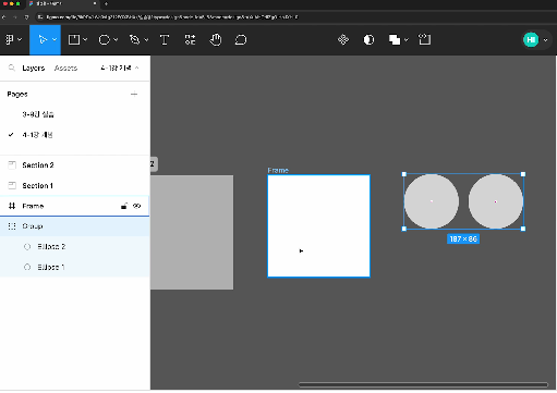 대신 상위개념인 섹션이 하위개념인 프레임이나 레이어 속으로 들어갈 수는 없다.