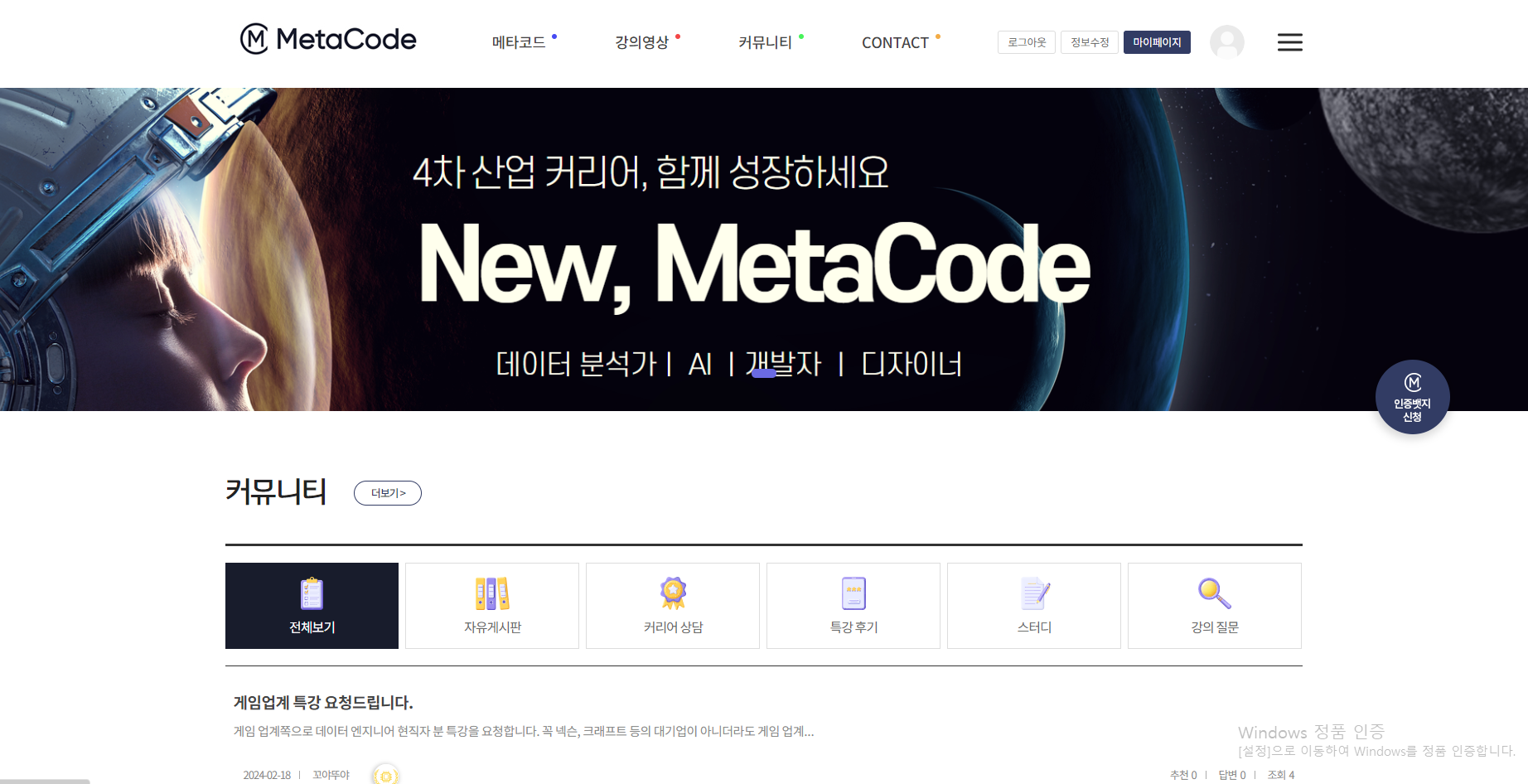 빅데이터 , AI 강의 플랫폼 & IT 현직자 모임 플랫폼ㅣ메타코드 커뮤니티 일원이 되시기 바랍니다.
