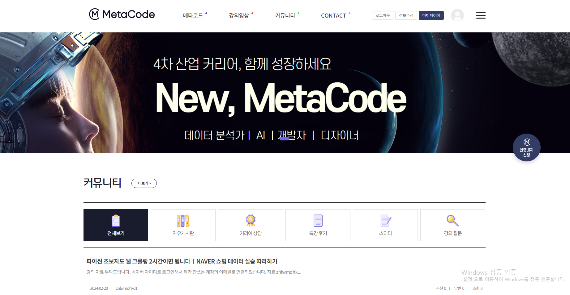 빅데이터 , AI 강의 플랫폼 & IT 현직자 모임 플랫폼ㅣ메타코드 커뮤니티 일원이 되시기 바랍니다.