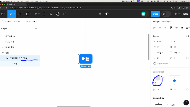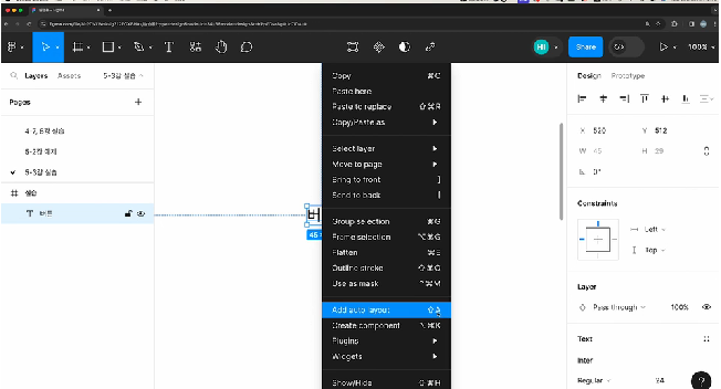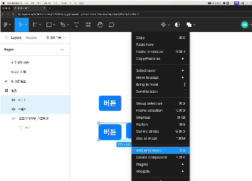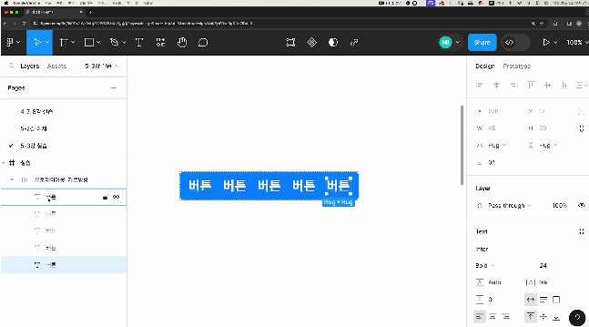 버튼 텍스트에 오토 레이아웃이 걸려있는 레이어를 복사해서