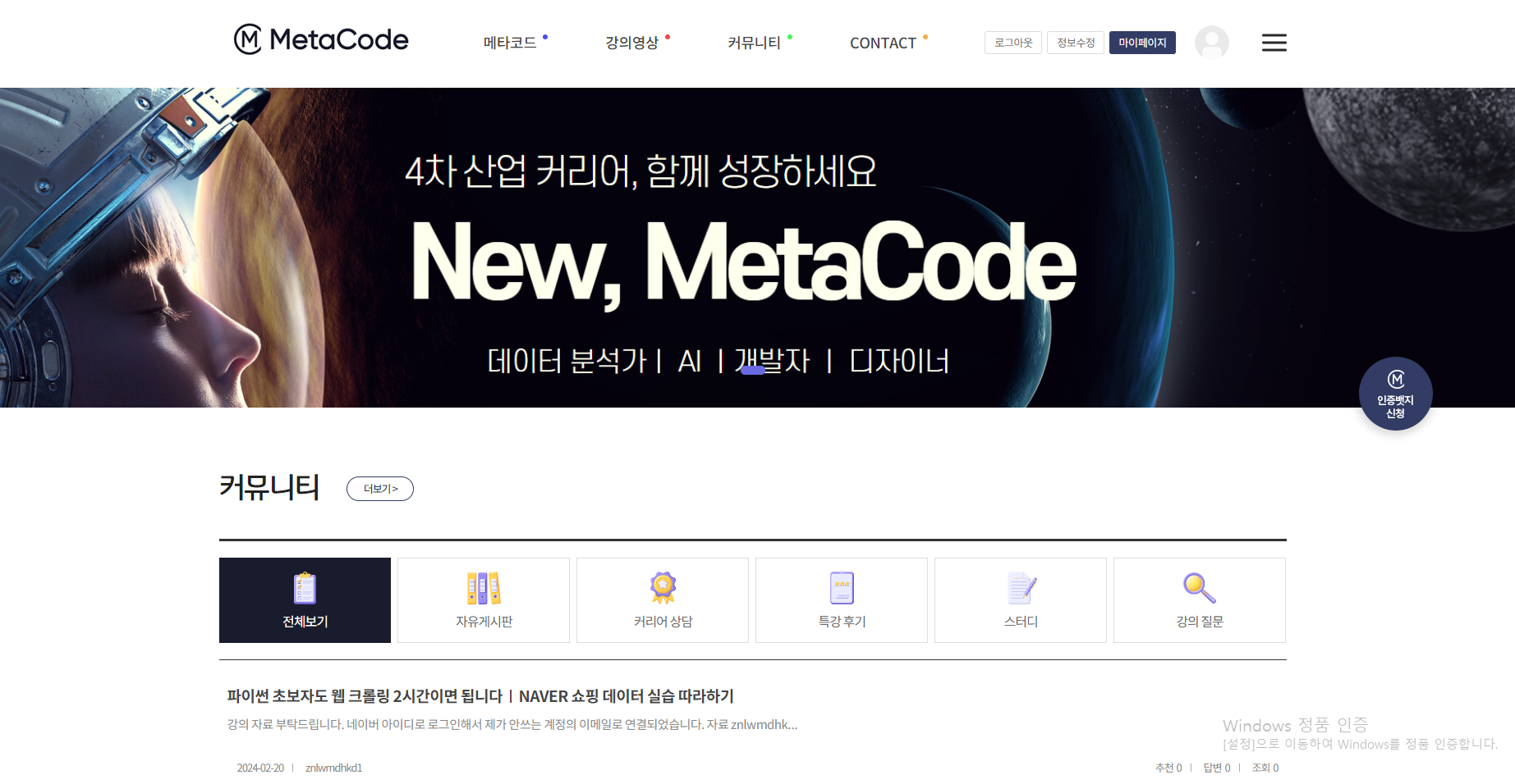 빅데이터 , AI 강의 플랫폼 & IT 현직자 모임 플랫폼ㅣ메타코드 커뮤니티 일원이 되시기 바랍니다.