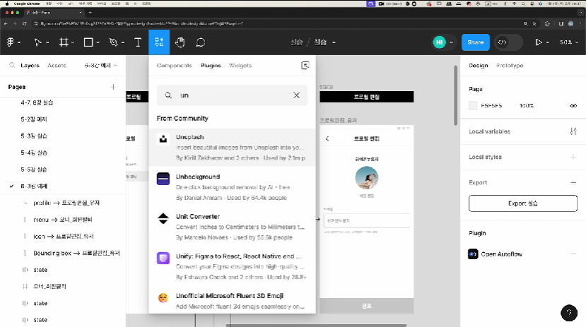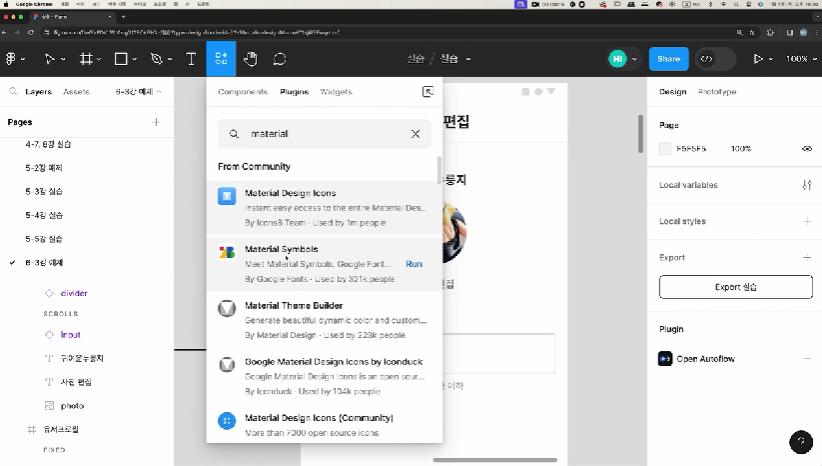 상단 도구에서 중앙에 있는 플러그인에 검색해서 사용할 수 있다.