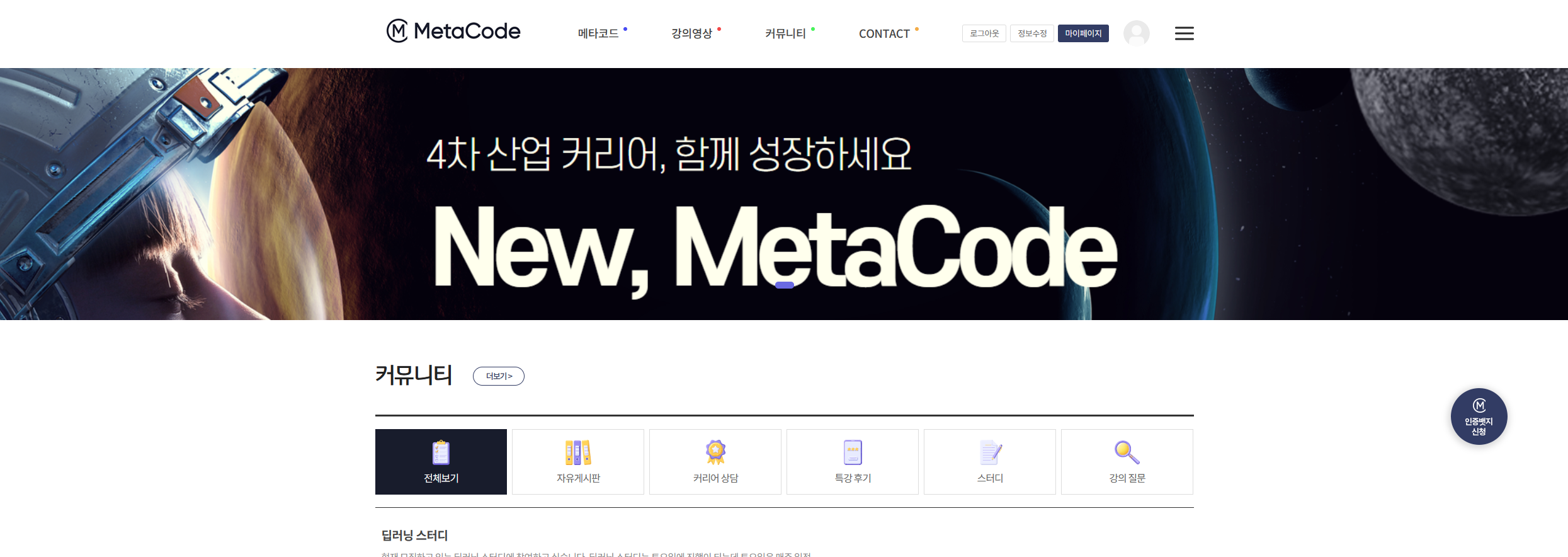 빅데이터 , AI 강의 플랫폼 & IT 현직자 모임 플랫폼ㅣ메타코드 커뮤니티 일원이 되시기 바랍니다.