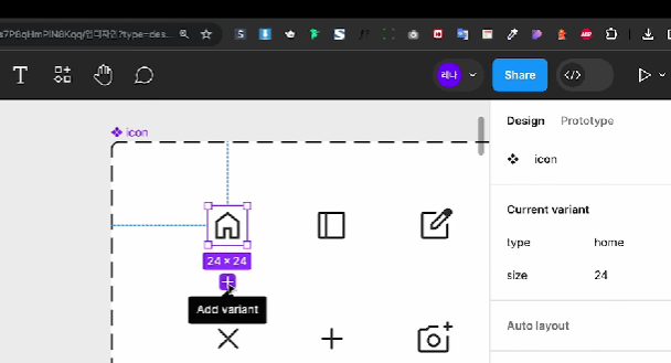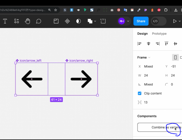 그리고 오른쪽 디자인패널에 Combine as variants로 묶어준다.