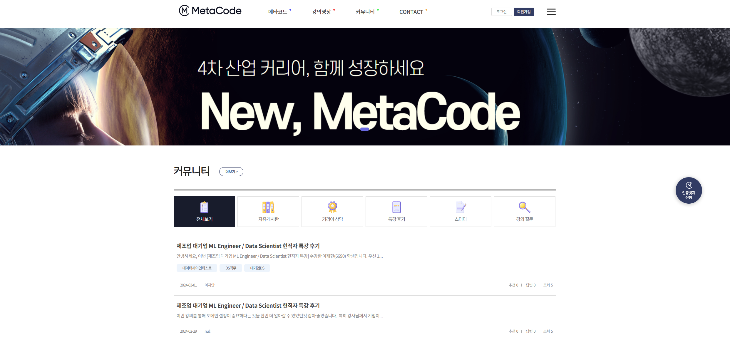 빅데이터 , AI 강의 플랫폼 & IT 현직자 모임 플랫폼ㅣ메타코드 커뮤니티 일원이 되시기 바랍니다.