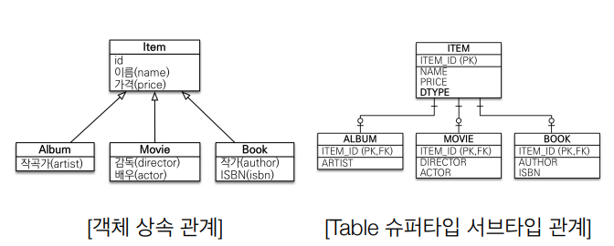 예를들어 Album 객체를 저장하려면 Item,ALBUM에 각각 INSERT를 해야 한다.