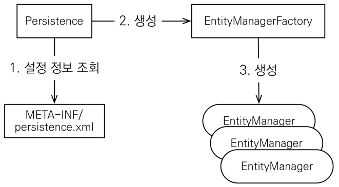 - persistence 클래스가 엔티티 매니저 팩토리를 생성해서 JPA를 사용할 수 있게 준비한다.