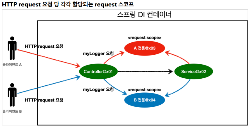 @Scope(value = "request") // request 스코프로 지정. HTTP 요청 당 하나씩 생성