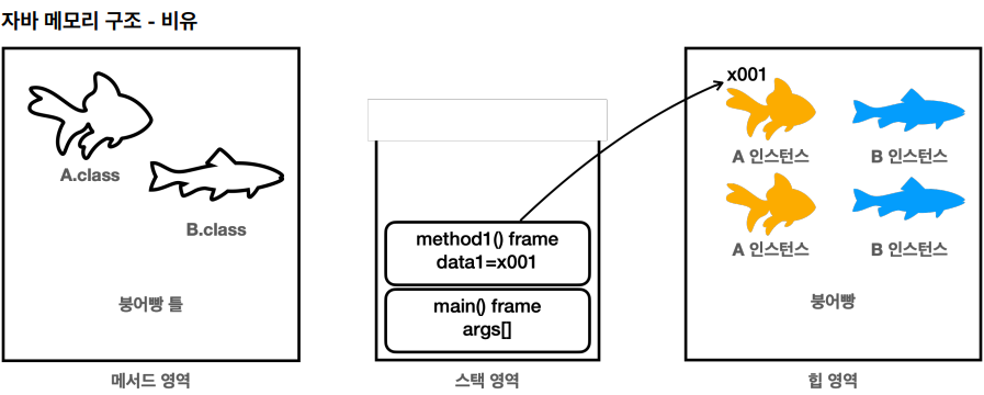 - 메서드 영역(Method Area): 클래스 정보 보관. 프로그램 실행 공통 데이터 관리 (static, 상수)