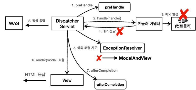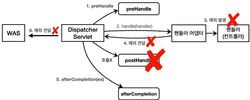 - 참고로, 이때에도 postHandle은 호출되지않는다.