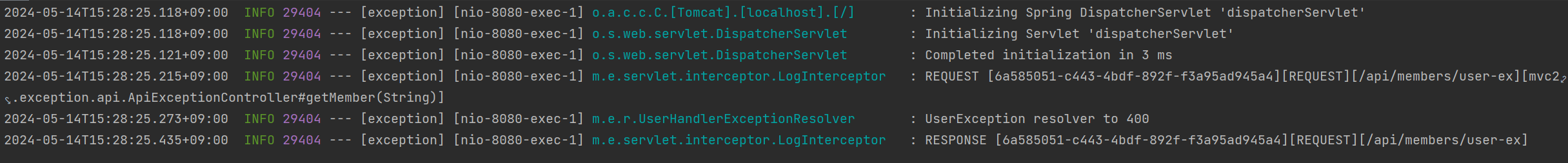 🪄 혹시 ex가 null이 뜨는문제가 생긴다면, RequestDispatcher 상수 네임스페이스를 확인해보자! 스프링 부트 3.0부터는 네임스페이스가 변경되었기때문에, javax 를 jakarta 로 변경해야한다.