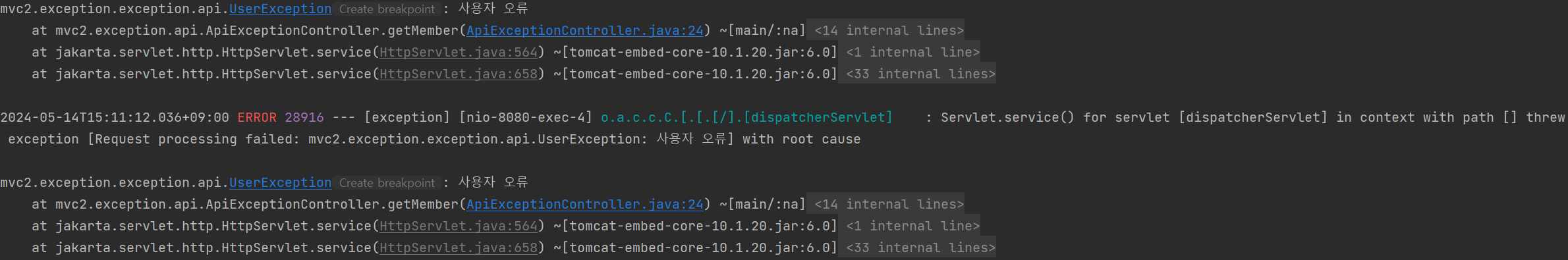 - ExceptionHandlerExceptionResolver 는 해당 컨트롤러에 IllegalArgumentException 을 처리 할 수 있는 @ExceptionHandler 가 있는지 확인한다.