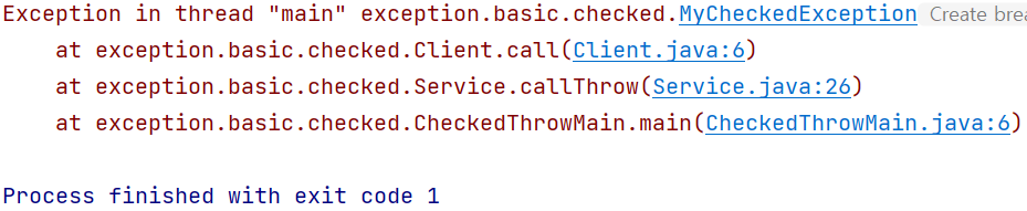 throw new MyCheckedException("ex"); //throw; 예외 발생