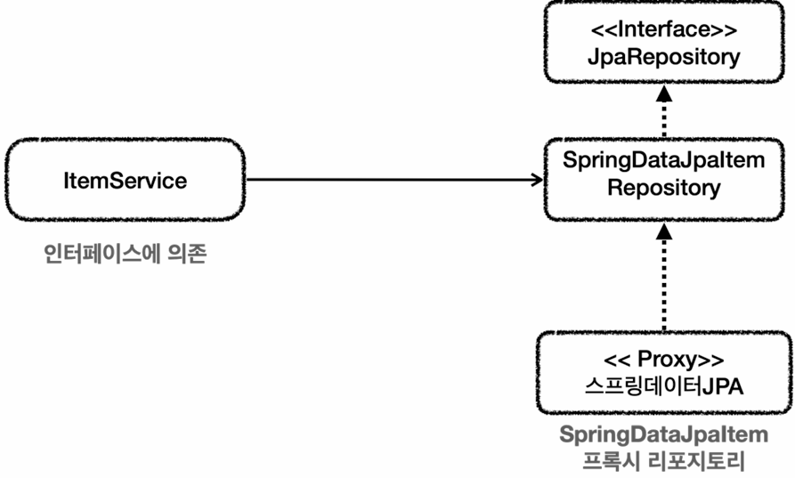 중간에 JpaItemRepository가 어뎁터 역할을 해준다.