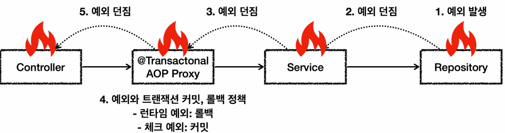 - 언체크 예외(RuntimeException,Error) : 트랜잭션 롤백