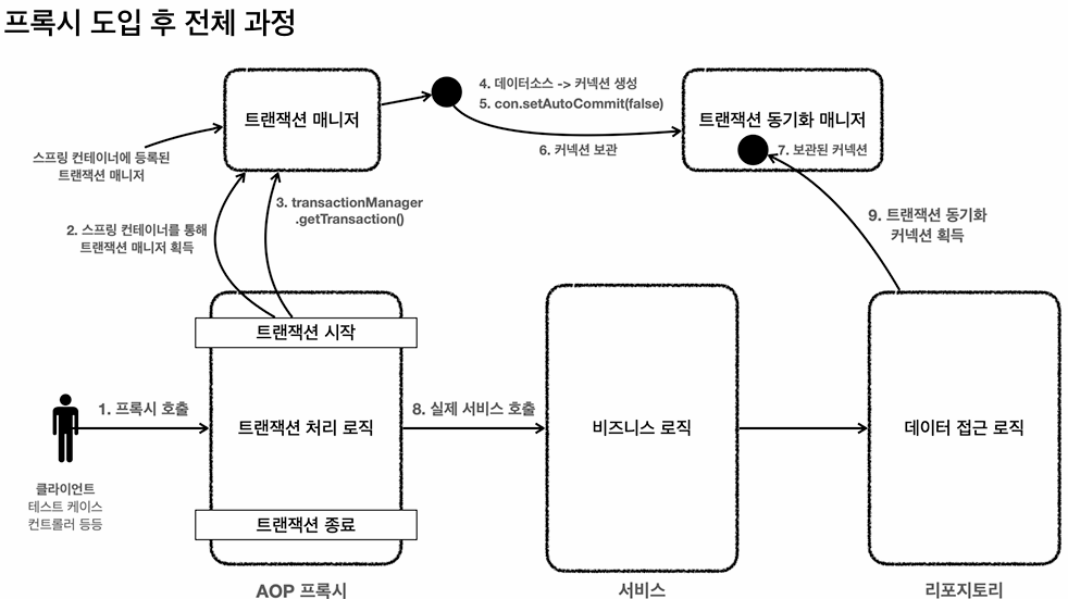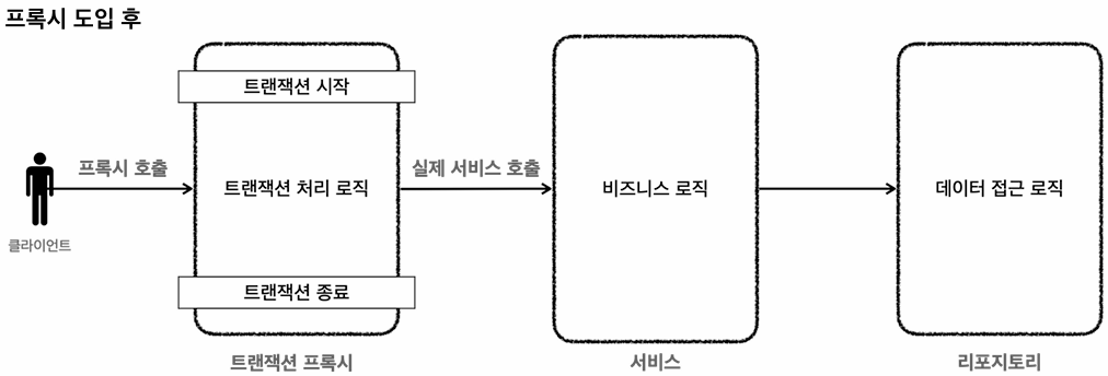 실제 tx() 호출 끝나고 프록시로 리턴되면 프록시는 트랜잭션 종료 (커밋or롤백)