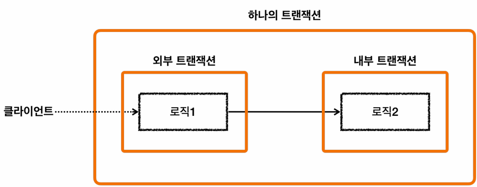 위에서, 외부 태랜잭션과 내부트랜잭션이 하나의 물리 트랜잭션으로묶이게 된다.
