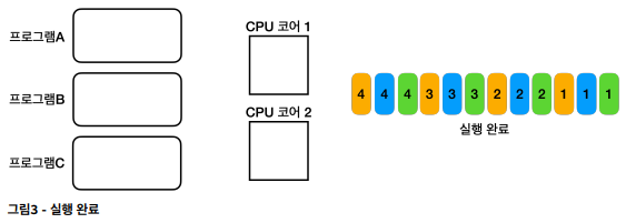 이런 불편함을 해소하기 위해 하나의 CPU 코어로 여러 프로그램을 동시에 실행하는 '멀티태스킹' 기술이 등장했다.