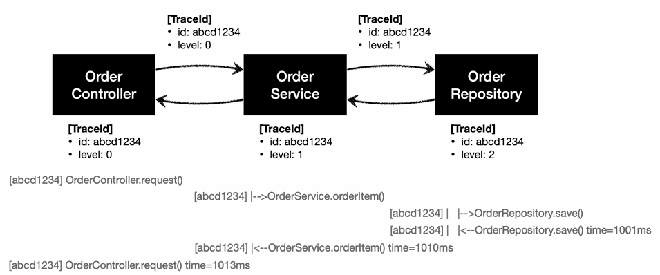 - 트랜잭션 ID (DB 트랜잭션X), 여기서는 하나의 HTTP 요청이 시작해서 끝날 때 까지를 하나의 트랜잭션이