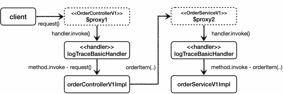 동적 프록시를 만들더라도 LogTrace를 출력하는 로직은 모두 같기에, LogTraceBasicHandler를 사용하면 된다.