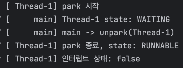 - unpark(): 스레드를 WAITING → RUNNABLE 상태로 변경