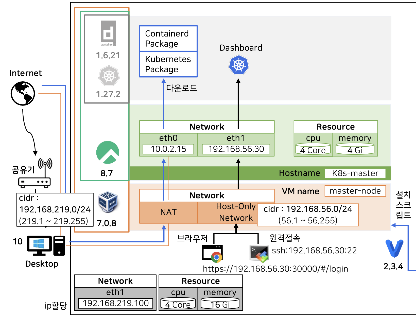 - 이 마스터 노드는 k8s-master라는 이름을 가지며, 사설 네트워크(프라이빗 네트워크)에서 192.168.56.30 IP 주소를 가짐
