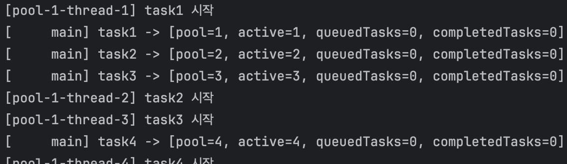 es.execute(new RunnableTask("longTask",100_000)); // 100초 대기