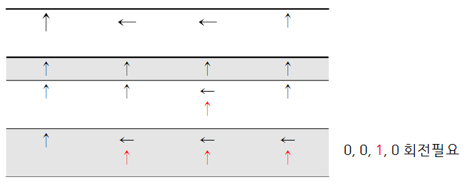 윗줄이 결정되면 -> 2번째 줄은 1번째 줄을 맞추려고누르고