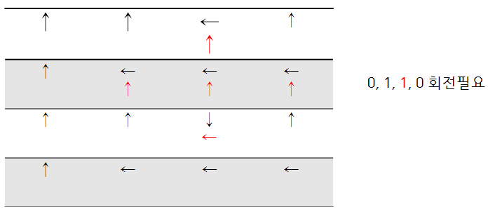 먼저 맨 윗줄에서 모든 누름 조합을 시도해본다.(완전 탐색)