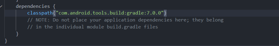 classpath("com.android.tools.build:gradle:7.0.0") for Gradle 7+