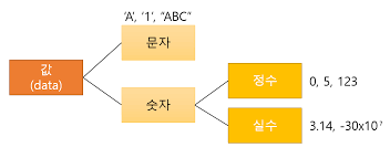 변수(variable): 하나의 값을 저장하기 위한 공간