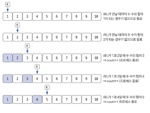 같을 때는 경우의 수를 1 증가시키고, end_index를 오른쪽으로 이동시킨다.